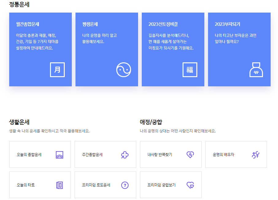 다양한 운세들이 있습니다. 본인이 원하시는 운세를 선택하시면 됩니다.