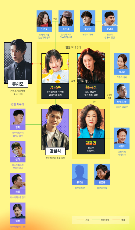 예전에 힘쎈여자 도봉순을 재밌게 봐서 이번 강남순도 넷플릭스 통해 시청하였는데 확실히 흥미진진하고 재미있습니다. 오늘은 등장인물을 알아보겠습니다.
